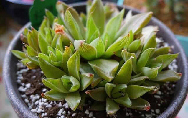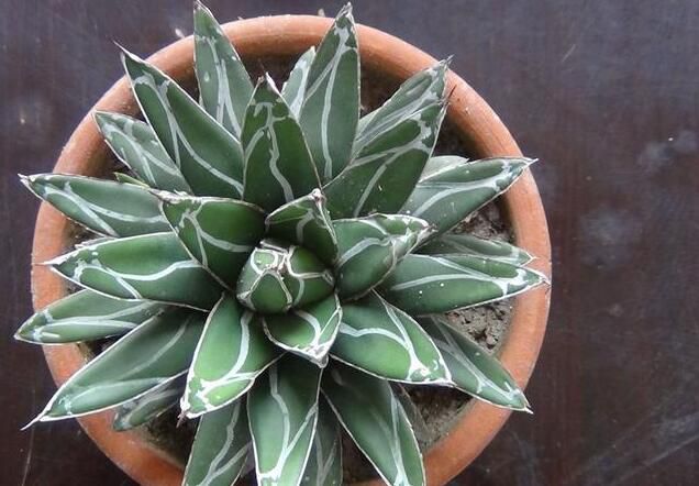 推荐理由:造型别致可人,叶短而厚质,坚硬,呈三角状,叶上有白色线纹。小苗价格是4到10元左右。它耐干、耐热、比较耐冷、适当耐阴,所以非常好养护。成株成球形,非常具有阳刚之气,同时它的基部可以长出侧芽,我们可以进行分株繁殖。