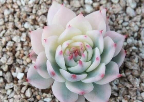 推荐理由:霜之朝的价格只要5到10元,植株圣洁雪白,被有白粉,光照足温差大叶缘会显粉色。易栽培,易叶插,养护非常容易,生命力要比高价的品种强很多。